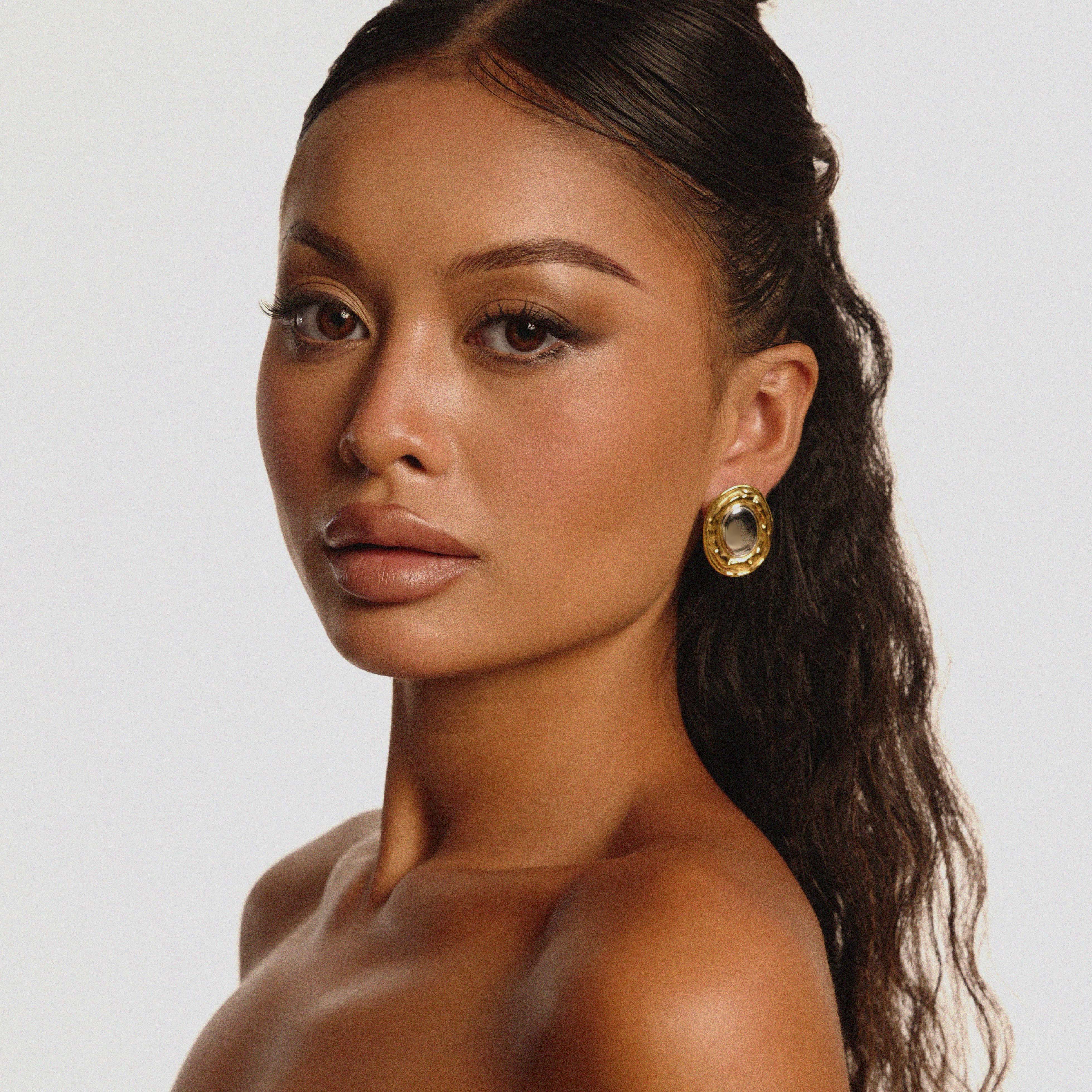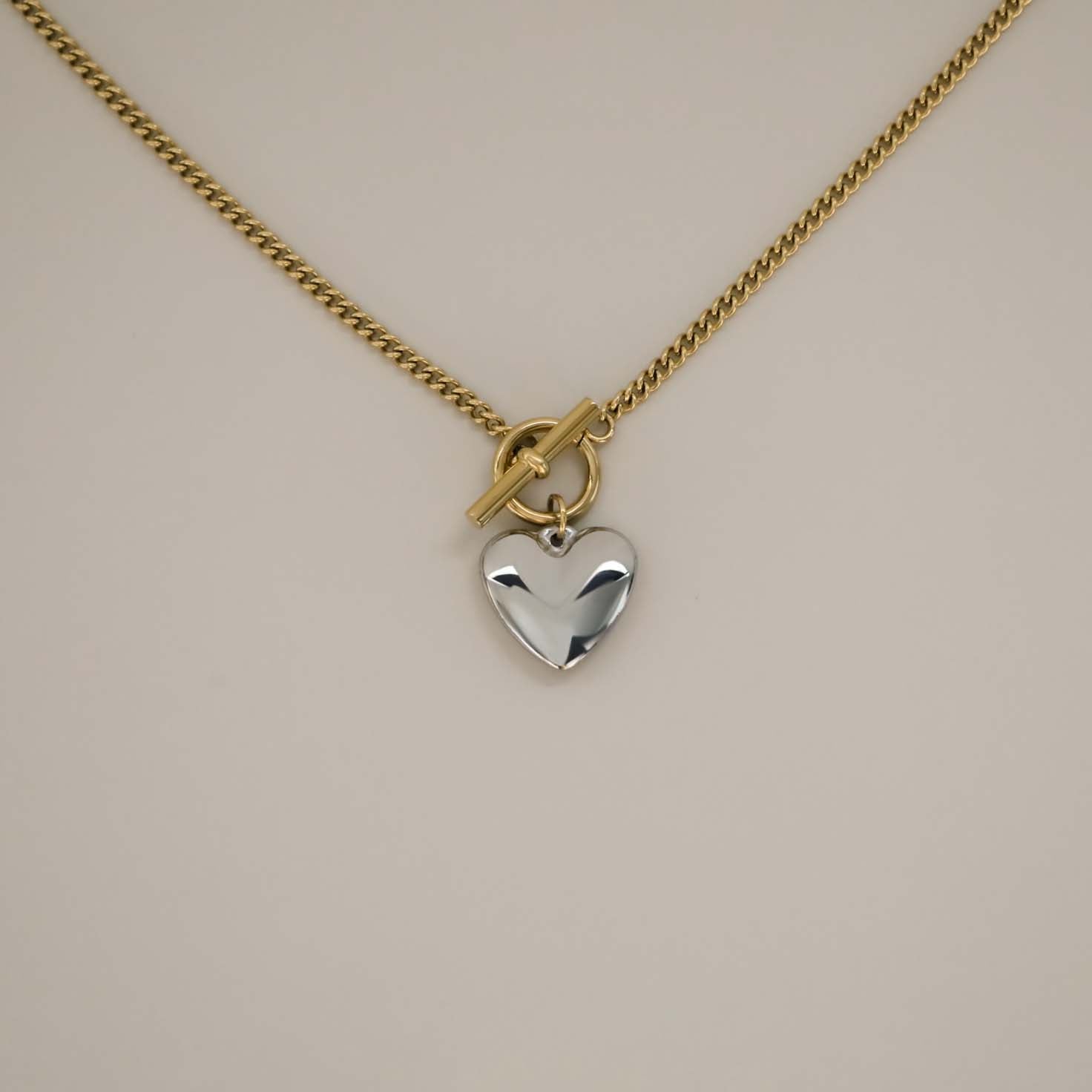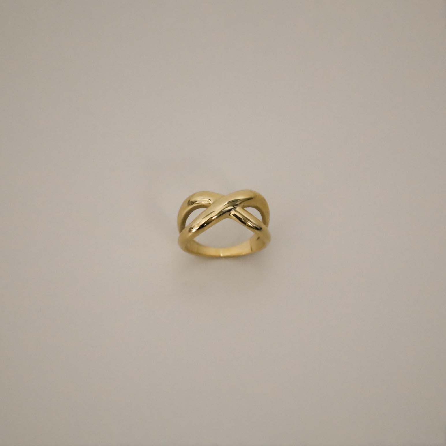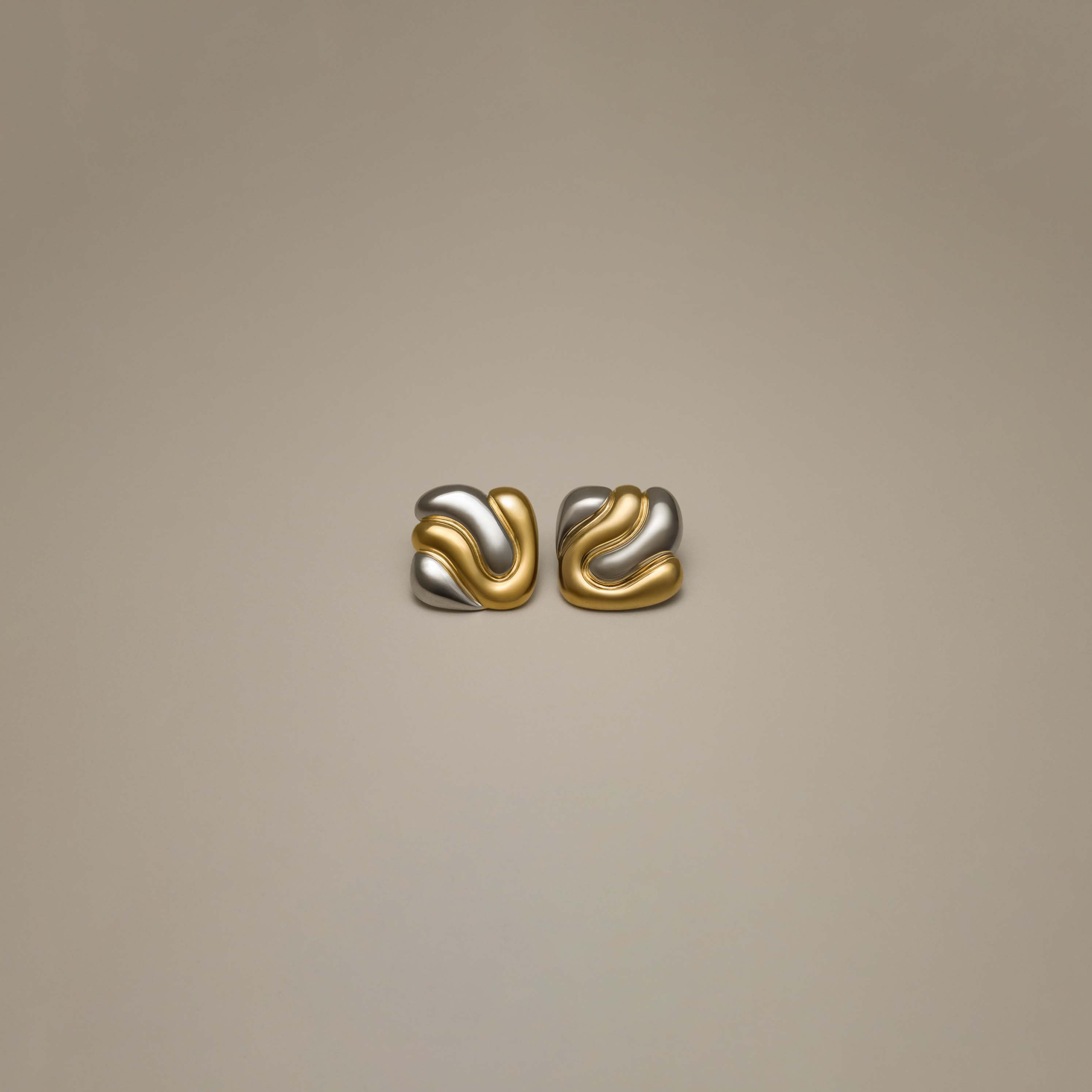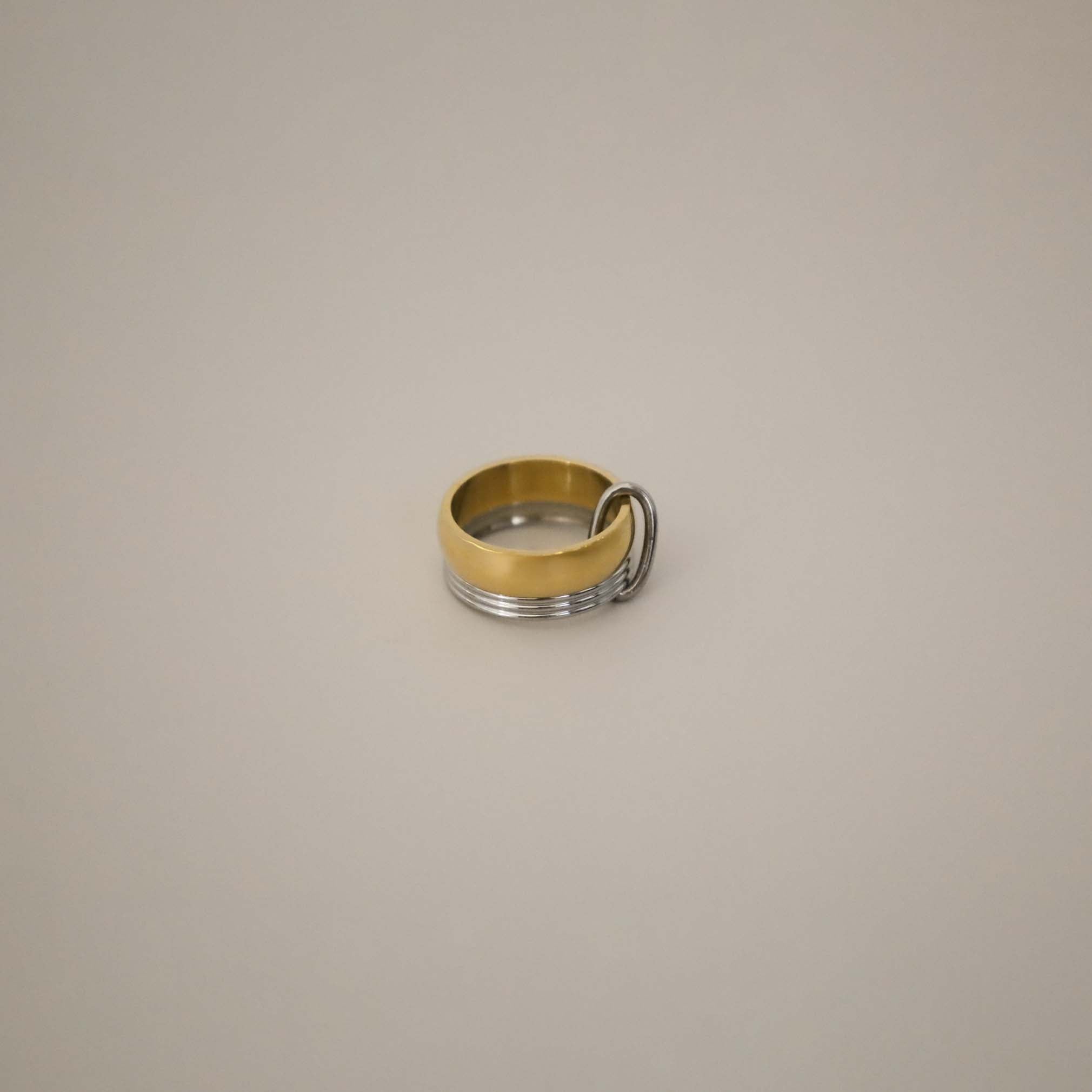 A bold, sculpted form with a smooth dome centre framed by a soft oval contour. Designed in a two-tone finish of gold and silver, it offers a modern take on a classic signet style. Available now in sizes 6, 7 & 8.