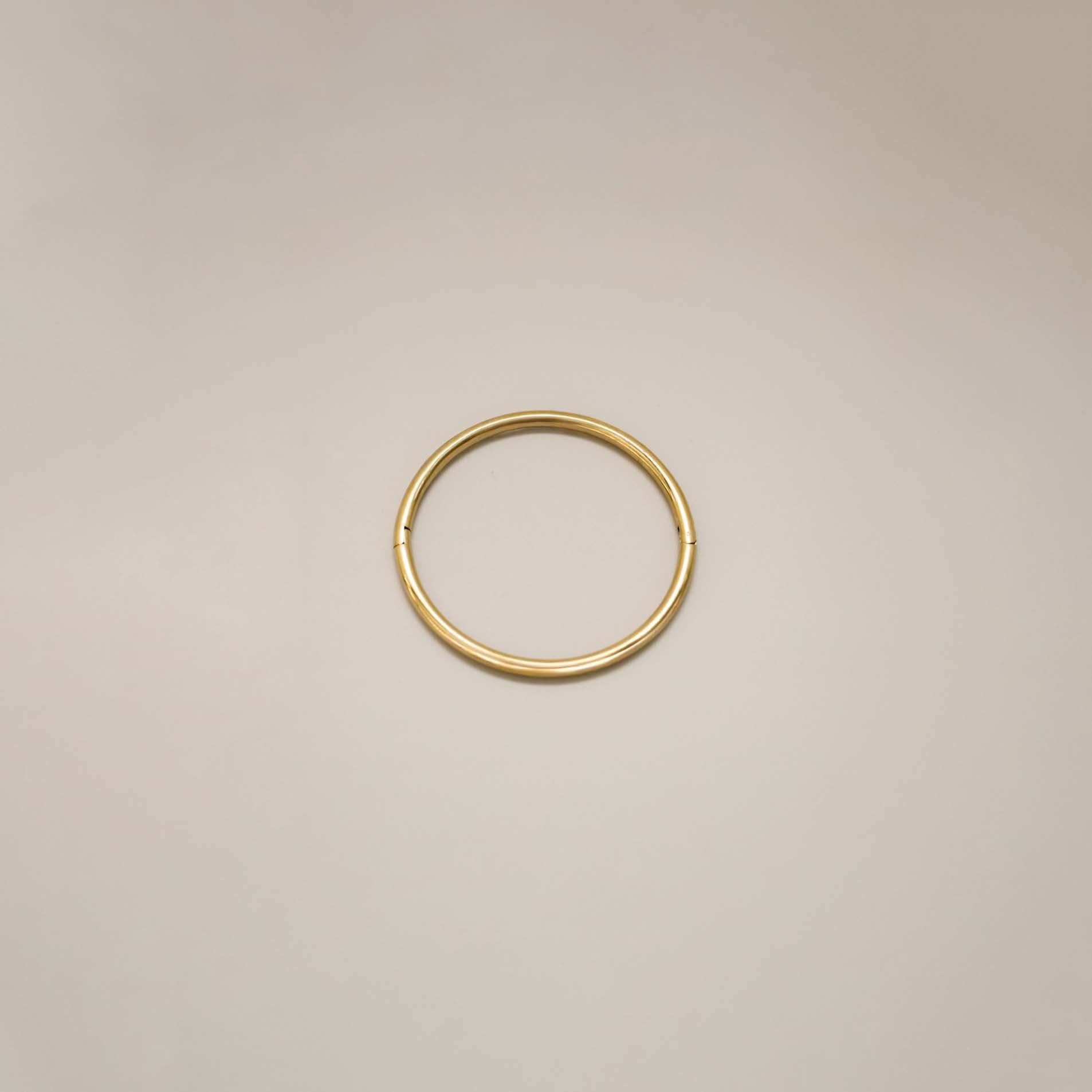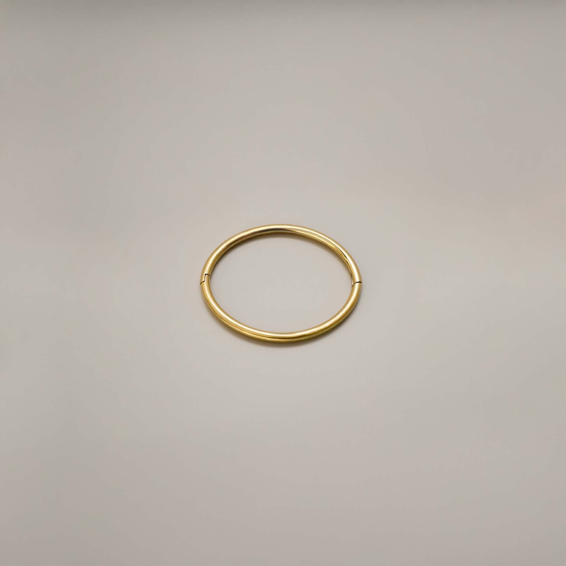 A sleek and refined piece, crafted with precision to create a minimalist yet elegant look. This thin hinge clasp bangle offers effortless wear with its secure clasp mechanism, making it perfect for everyday styling or layering with other pieces or multiple Brei bangles. Its polished finish and versatile design make it a perfect choice for any occasion and must have in every jewellery lovers collection.
