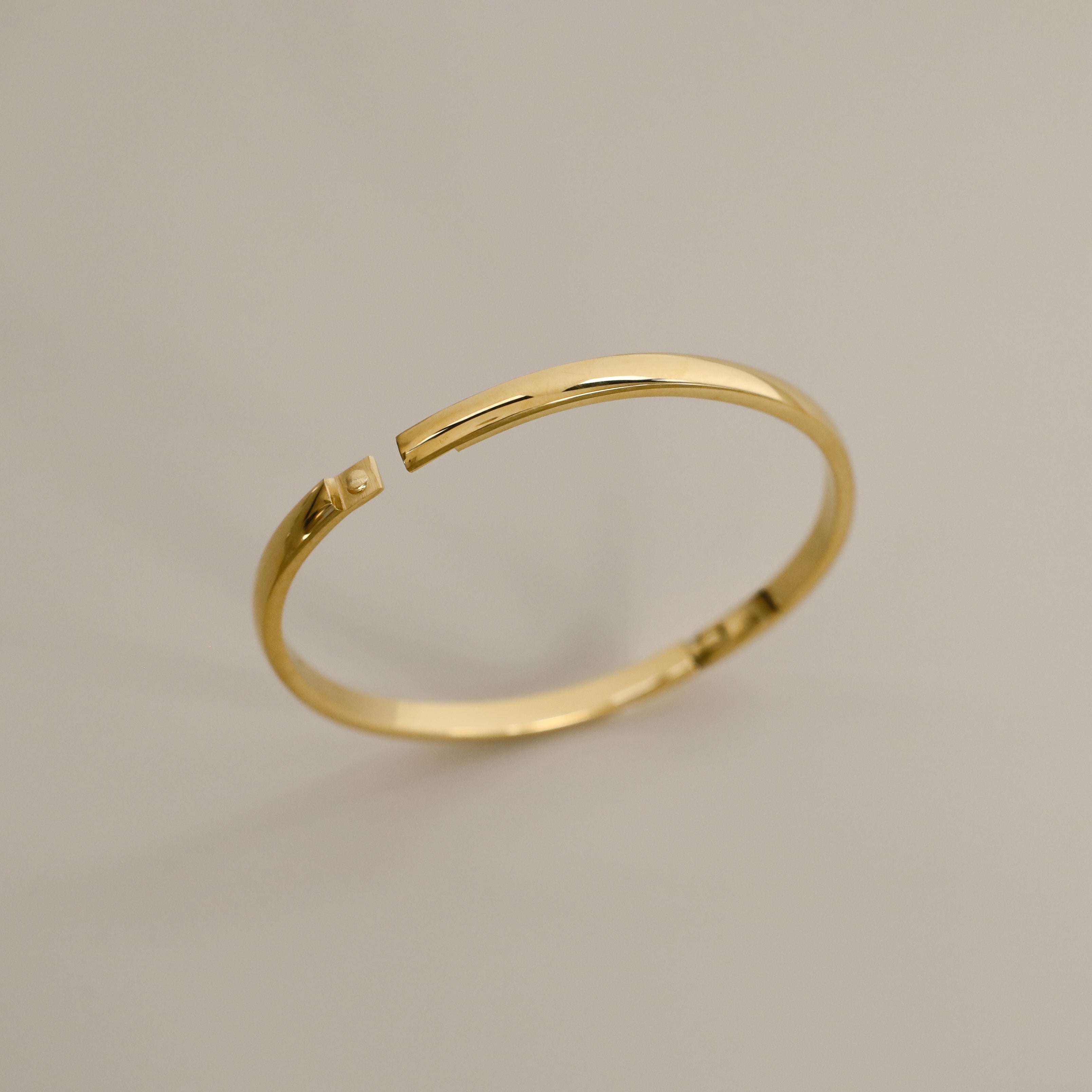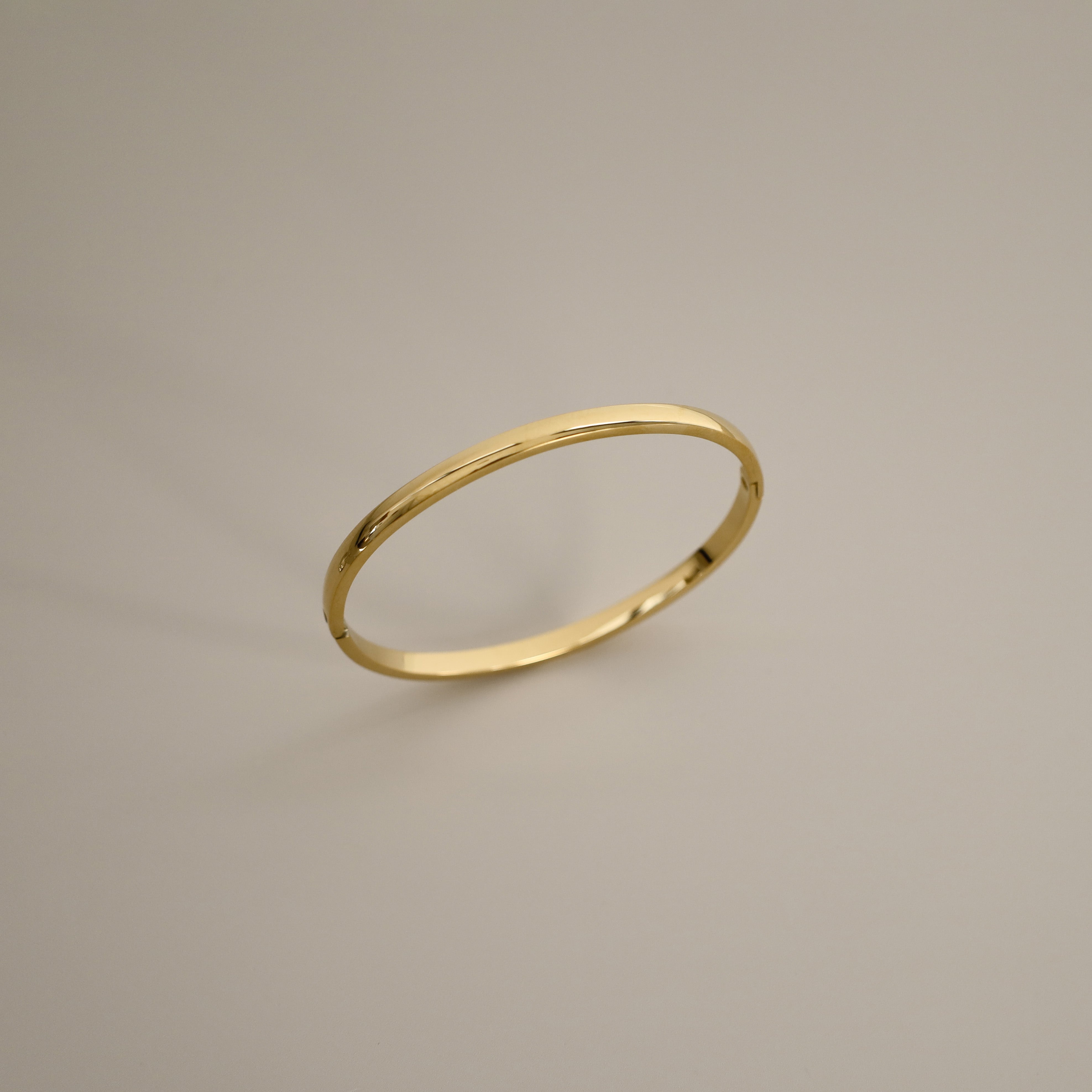 The Brei Bangle is a sleek and refined piece, crafted with precision to create a minimalist yet elegant look. This thin hinge clasp bangle offers effortless wear with its secure clasp mechanism, making it perfect for everyday styling or layering with other pieces or multiple Brei bangles. Its polished finish and versatile design make it a perfect choice for any occasion and must have in every jewellery lovers collection.