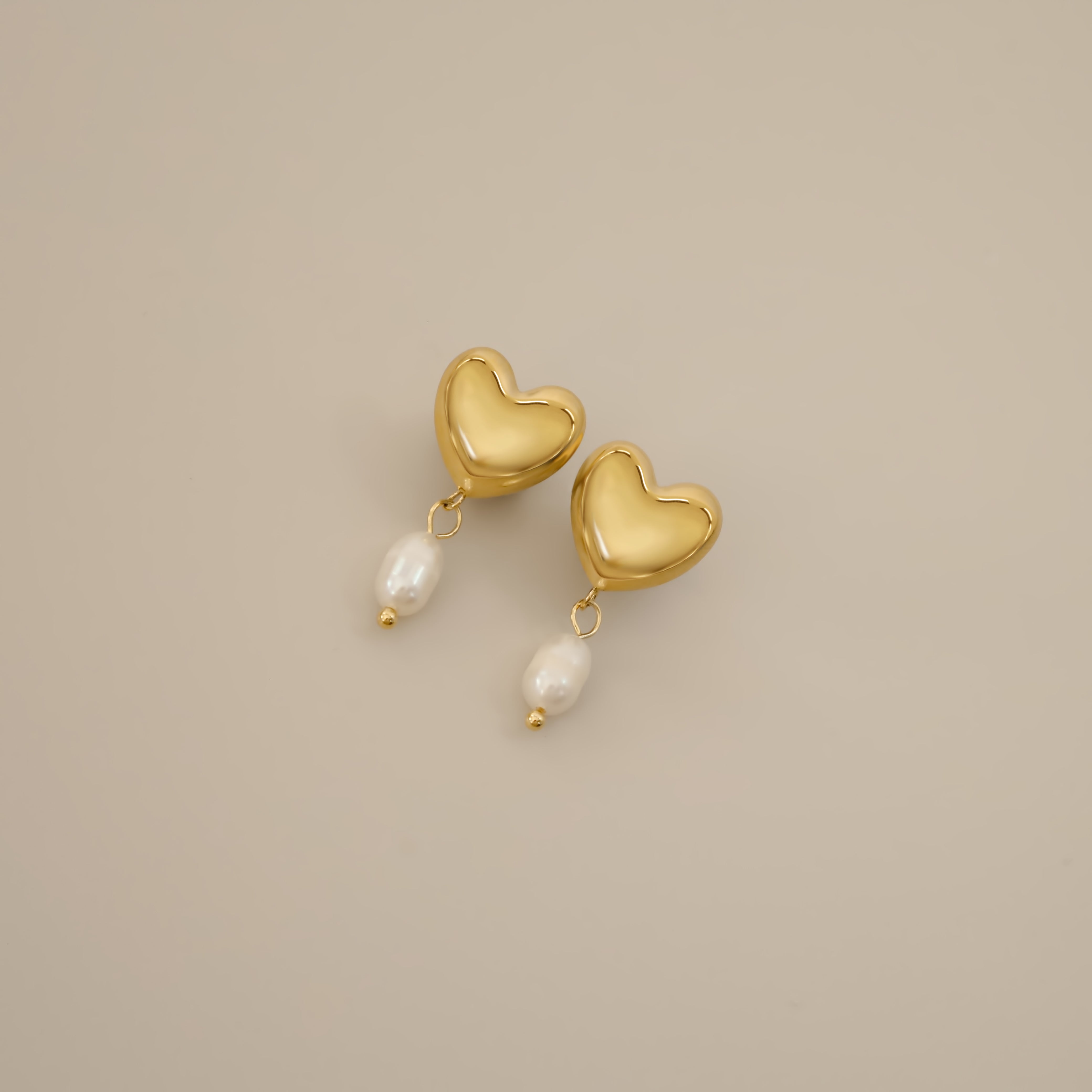 The Ehlani Earrings feature a bubble-like gold heart stud with a natural freshwater pearl drop, creating a delicate balance of elegance and charm. Their soft, rounded silhouette adds a timeless appeal, while the subtle movement of the pearl enhances their refined design. Lightweight and versatile, they are perfect for both everyday wear and special occasions.