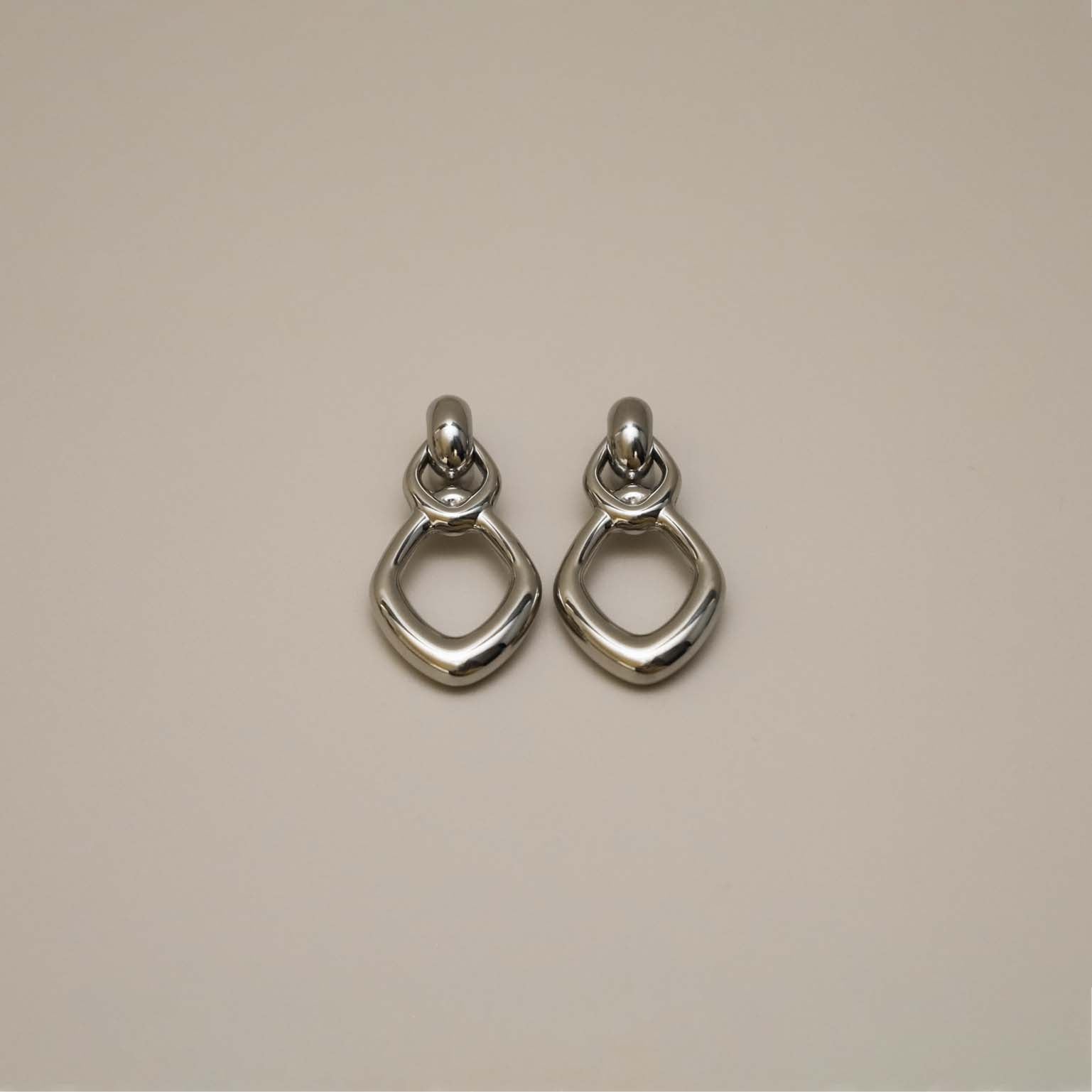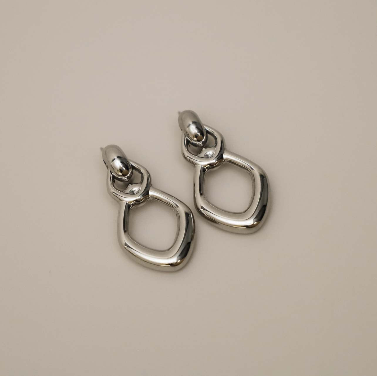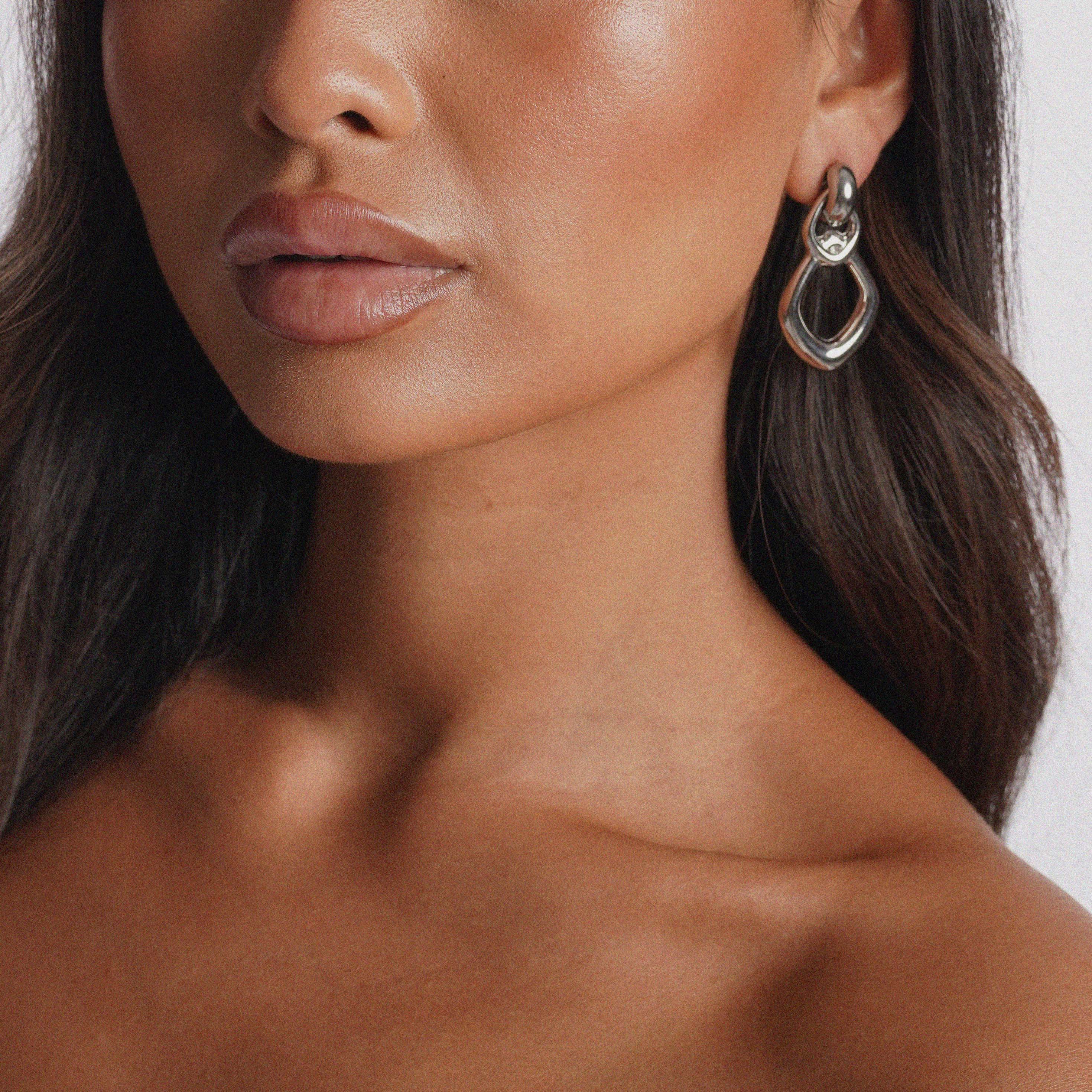 The Ekre Earrings feature a bold, sculptural design with smooth, rounded edges and an open geometric shape. Crafted in Rhodium Plated Stainless Steel, they dangle elegantly from a stud, creating subtle movement with every step. Lightweight and refined, the Ekre Earrings are an effortless way to elevate both everyday and occasion looks.