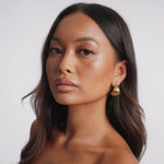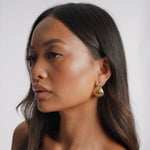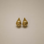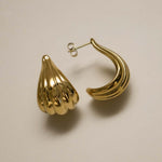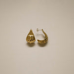 The Elloura Earring curves into a fluted teardrop with sculpted ridges and a smooth, contoured finish that wraps beautifully under the lobe. Its soft ridges catch the light from every angle, while the tapered shape creates a distinctive silhouette, bringing a subtle vintage feel. Bold yet refined, it’s an understated statement that works for both everyday and elevated dressing.