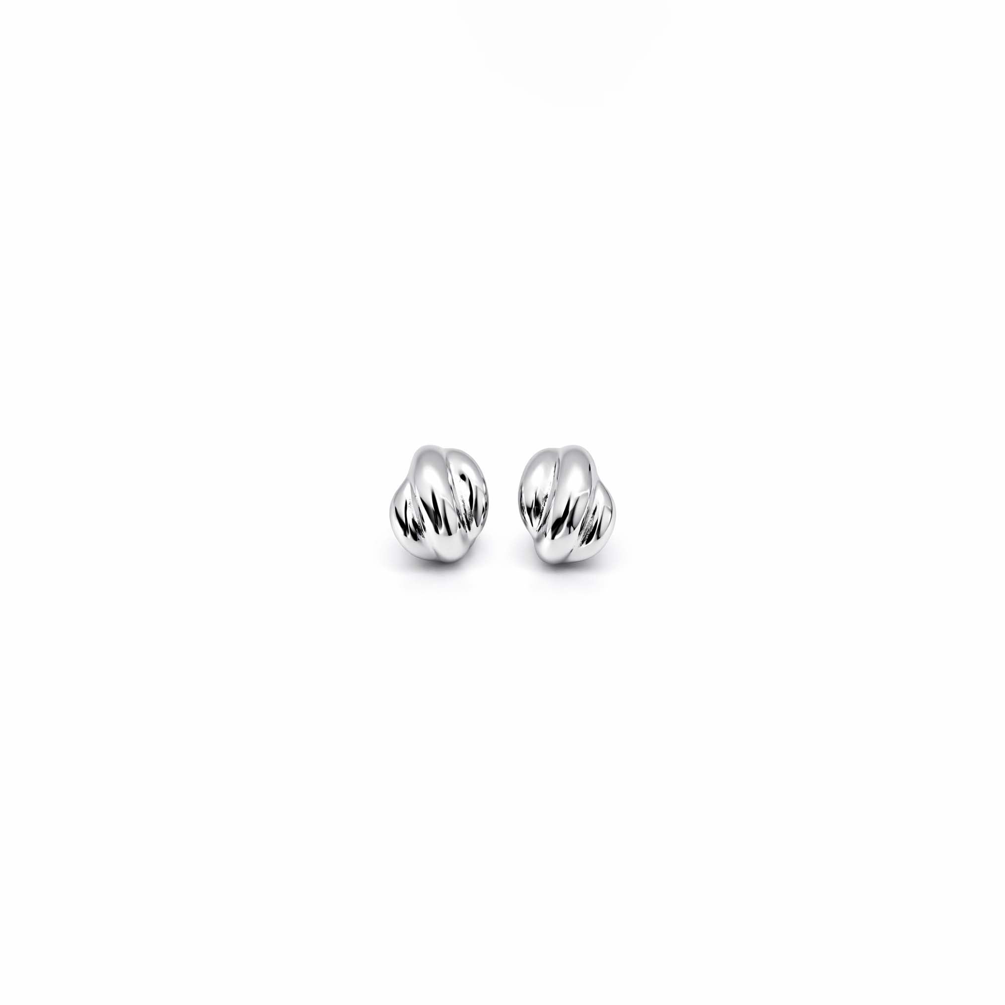 The Enza Silver Earrings are mini hoop earrings with a small crescent profile. They feature a domed, rounded C-shape that’s sculpted with soft, folded grooves for dimension and shadow. The scale sits just off the lobe for a neat, close fit, and the lightweight design makes them comfortable for all-day wear. A twist on your classic dome hoop earrings.