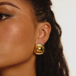 The Evoli Earrings blend vintage energy with a modern finish. They are a soft-square stud with a gently domed center set inside a smooth rounded frame. The pillowy profile adds dimension without feeling heavy, making them an easy go-to for day or night.