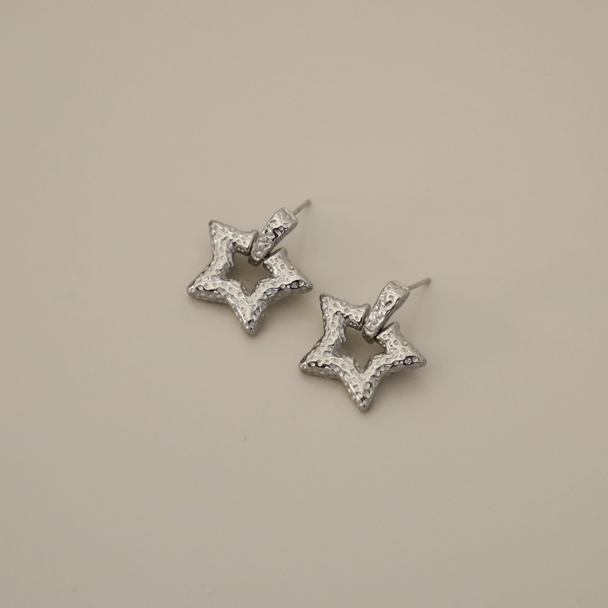 The Evoxa Earrings are mini stud earrings featuring a textured open-star design. Crafted with an organic finish, they add a subtle yet distinctive touch to any look. Lightweight and versatile, the Evoxa Earrings are perfect for effortless everyday wear.