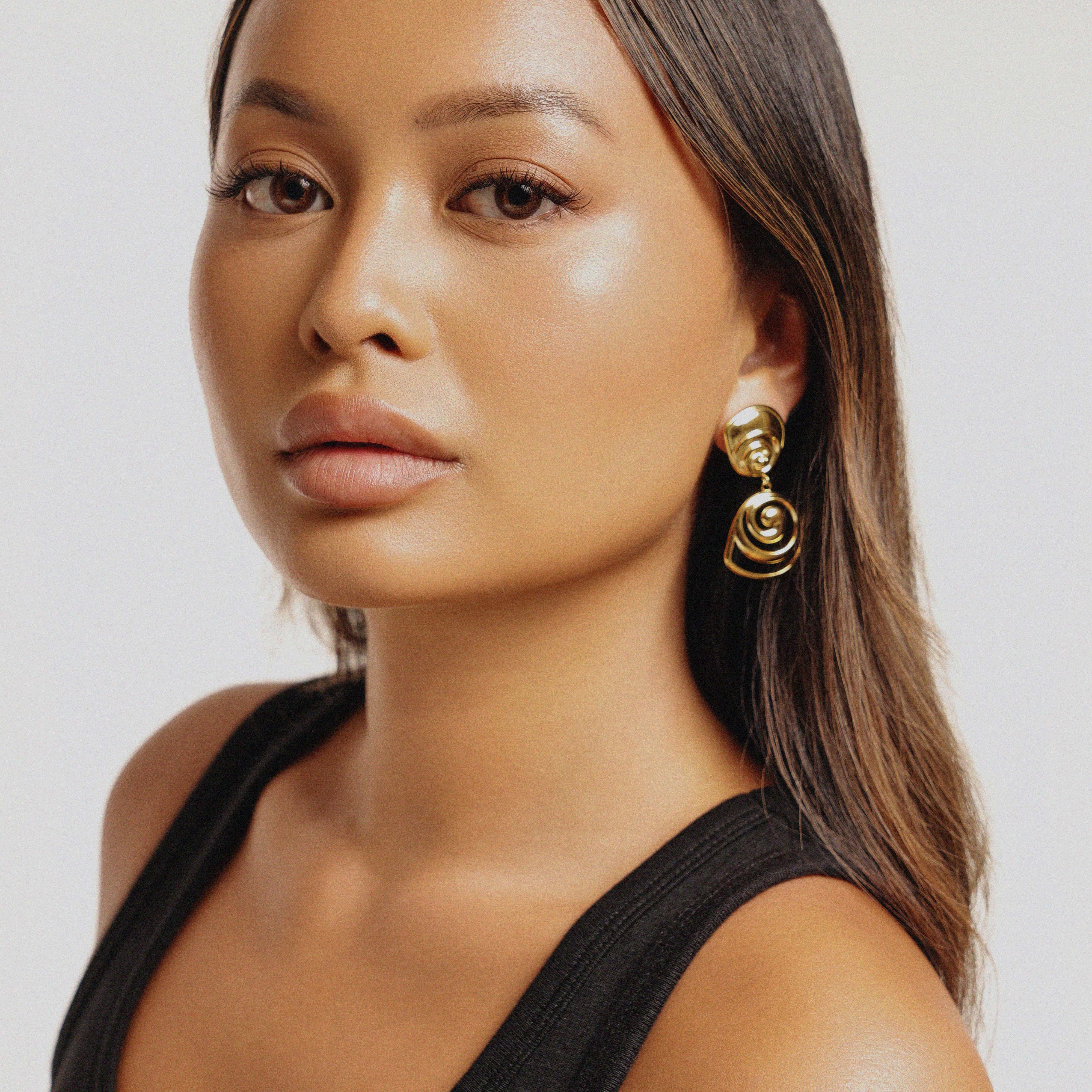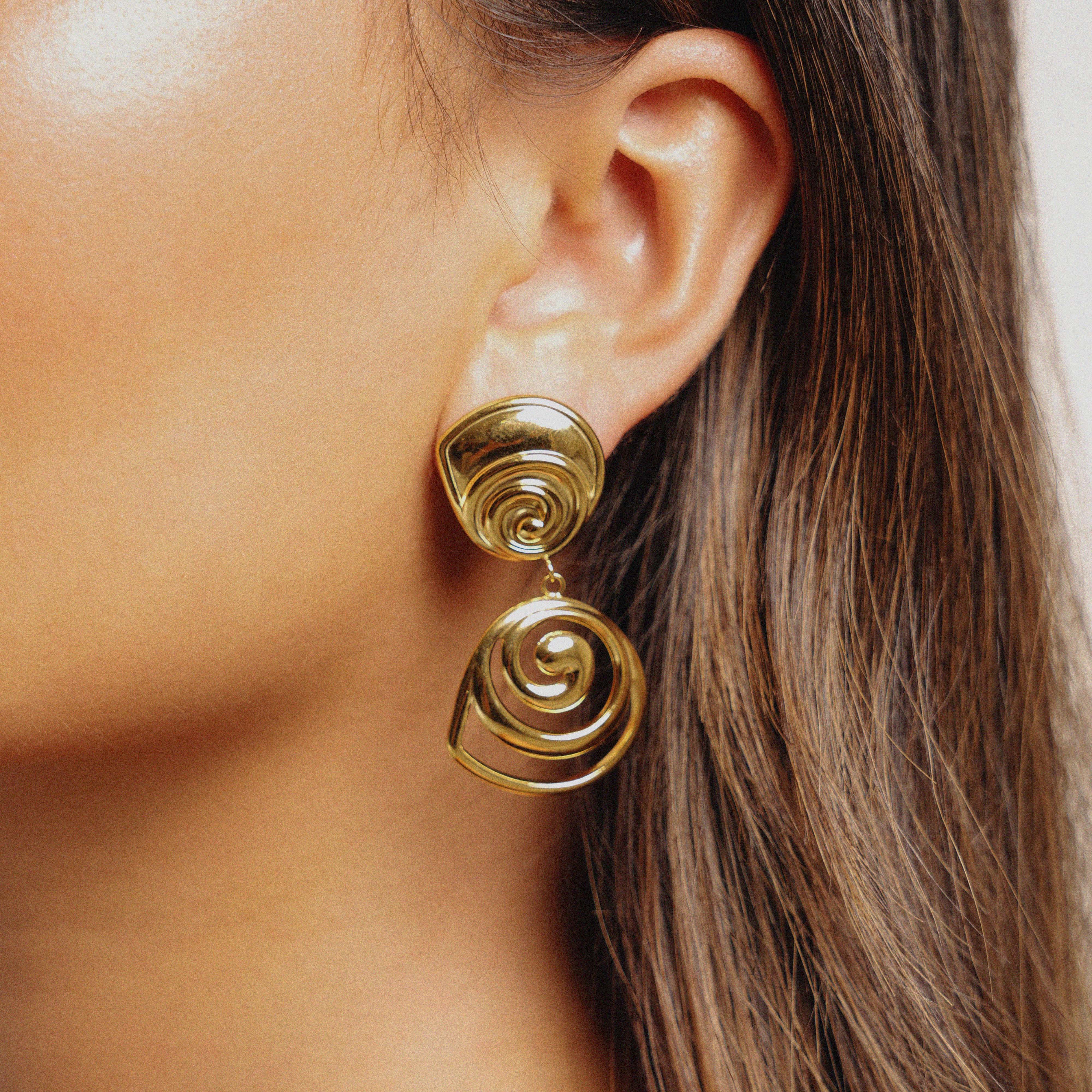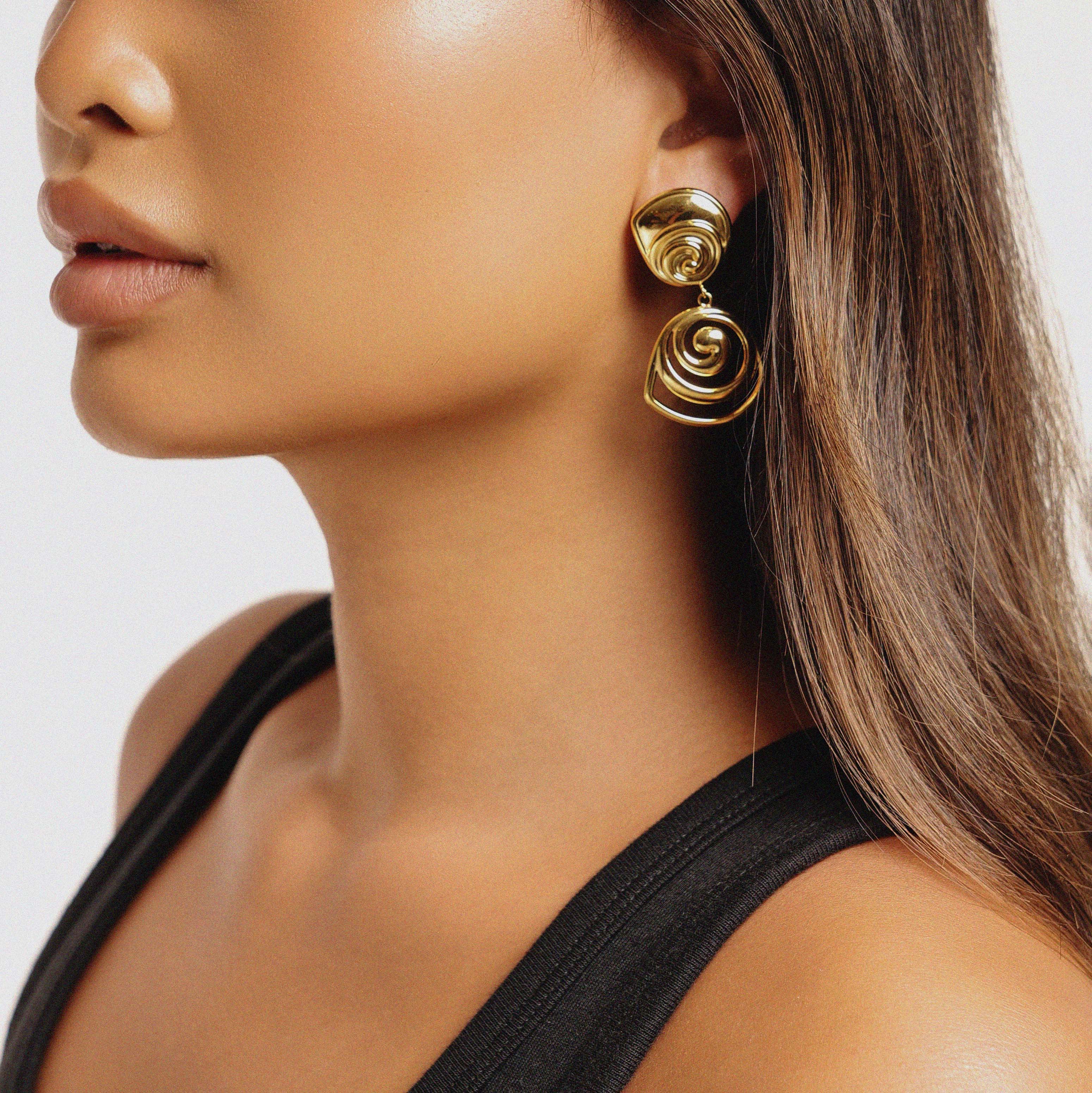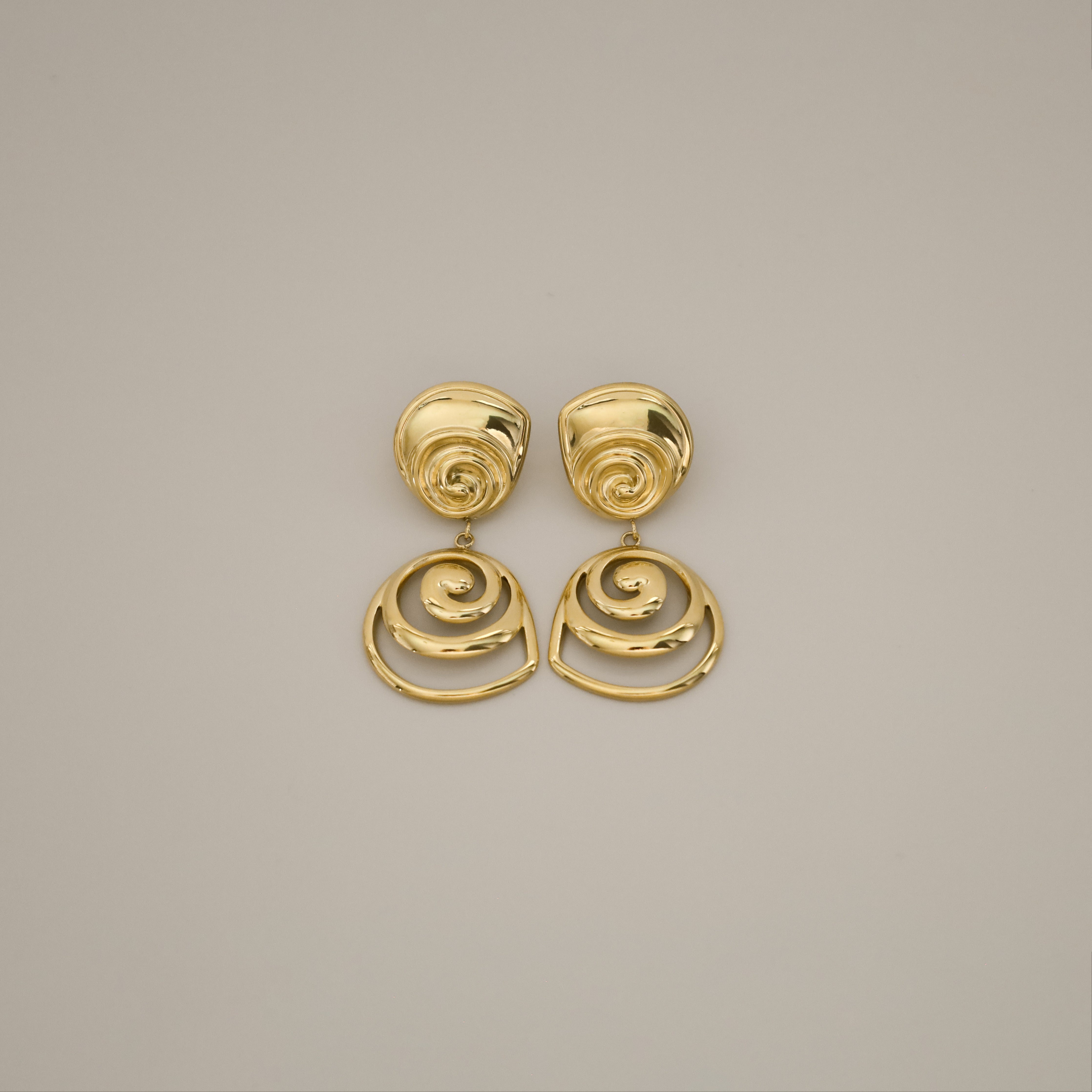 The Eybir Earrings feature a captivating spiral drop design. With their eye-catching curves and openwork detailing, these earrings are the perfect statement accessory for both day and night. Effortlessly elegant, the Eybir Earrings are sure to turn heads wherever you go.