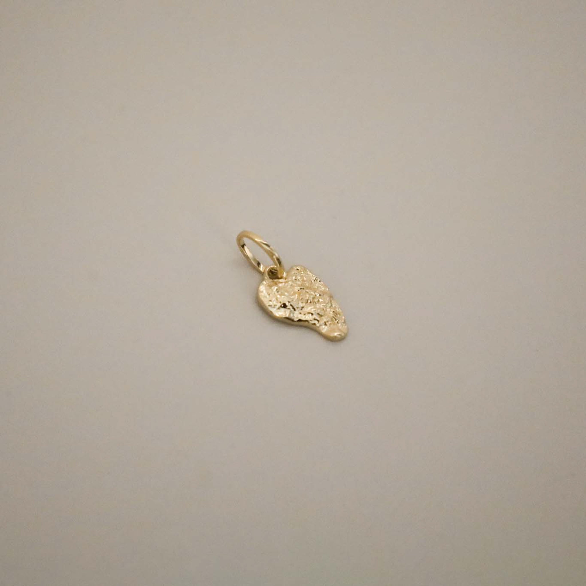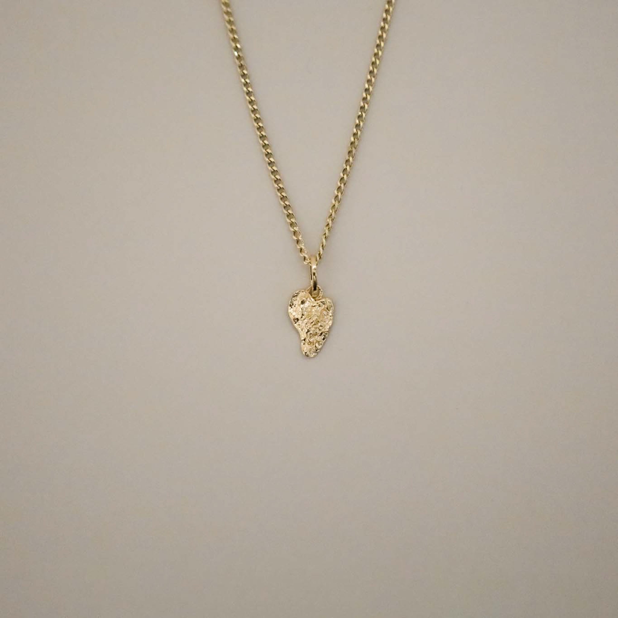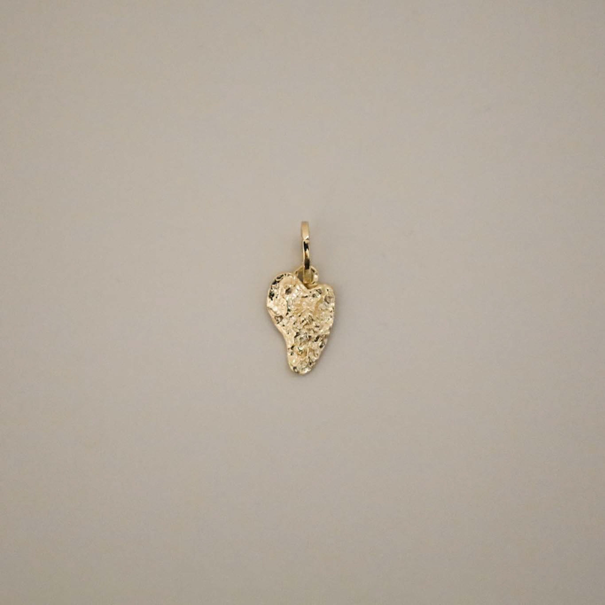 The Irregular Heart Pendant is crafted in 18K Solid Gold, featuring an organic, uneven heart shape that adds character and depth. Its raw, textured surface gives it a natural feel, making it a subtle yet distinctive piece that stands out. In contrast, its smooth back allows it to sit flush and comfortably on the décolletage. Perfect to wear alone or layered with other necklaces.