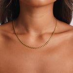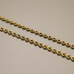 The Nairi Necklace features a unique linked design made from softly rounded heart shaped forms, giving it a subtle texture and gentle movement. Finished in 18K Gold Plating, it catches the light effortlessly while remaining minimal and easy to wear. A versatile piece for adding a little something to everyday looks or elevating a night out.