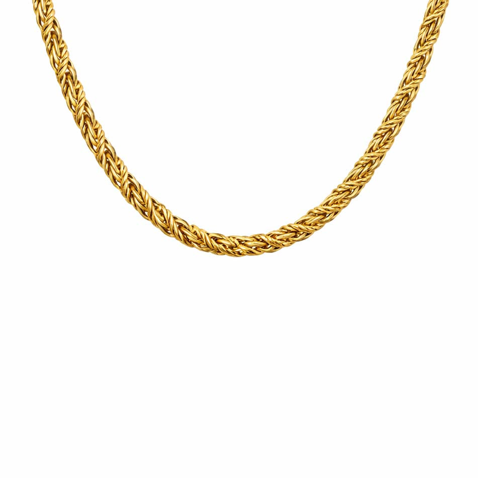The 'Necca' Necklace features a 5mm thick braided twist chain, perfect for adding a touch of elegance to any outfit. Pair with the matching 'Barlow' Bracelet for a coordinated and chic look, as they are designed to be worn together and complement each other perfectly.