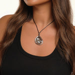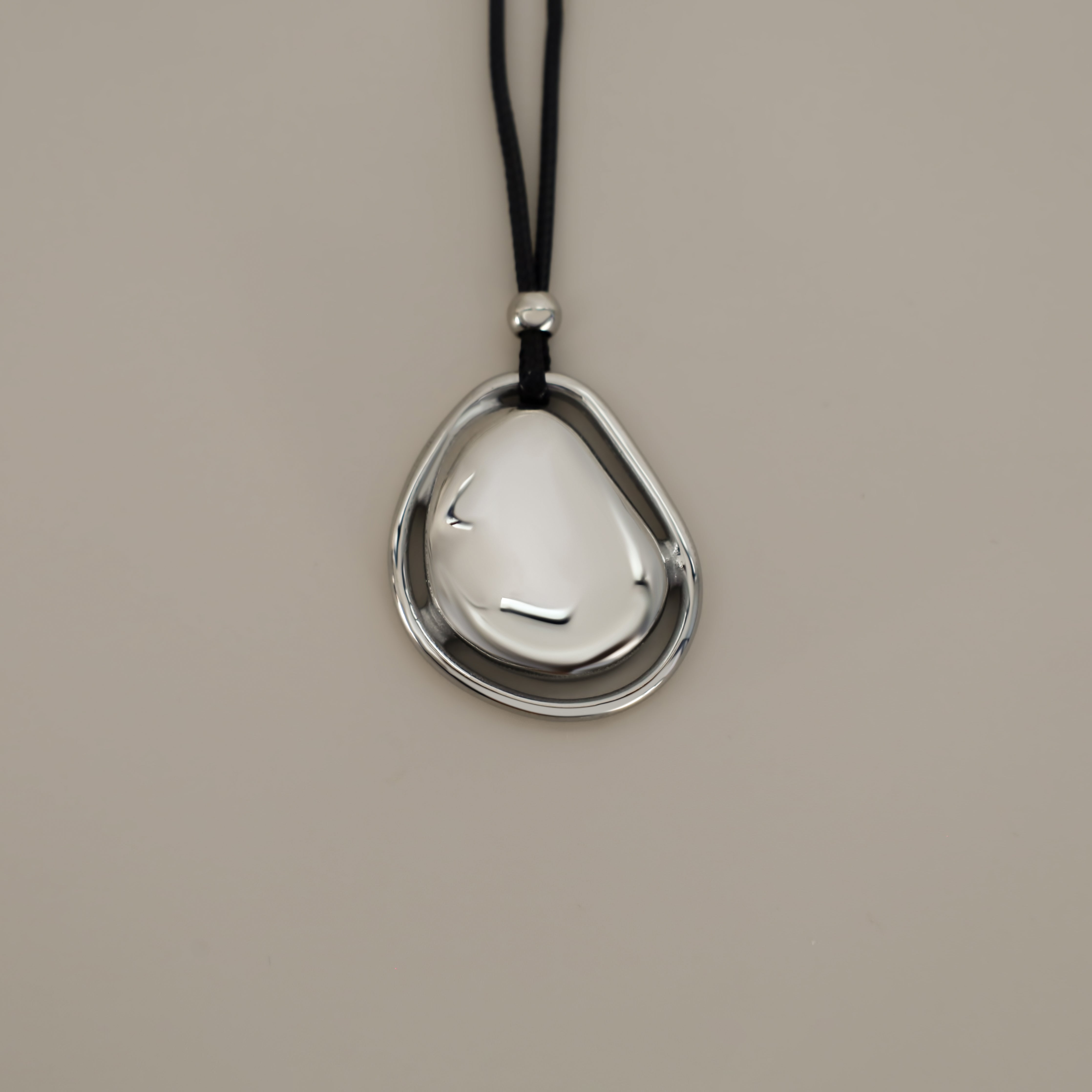 The Neori Necklace features an organic, sculptural pendant suspended from a sleek adjustable leather cord. The adjustable cord allows it to be worn at your desired length & its fluid form creates a modern yet timeless look, balancing structure and movement. Versatile and understated, the Neori Necklace adds a refined touch to both casual and elevated styling.