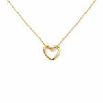 The Nixxe Gold Necklace features a smooth open gold heart pendant looped directly around a fine round snake chain, sitting seamlessly at the neckline without a traditional bail. The clean, minimal design of the heart lets the form speak entirely for itself — no embellishment, no added detail, just a well proportioned open heart in polished gold. The pendant can also be removed from the chain entirely, giving you the option to wear it a different way or swap it onto another chain.