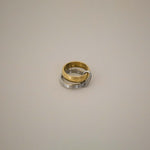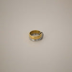 The Roan Ring brings together contrast and form in a quietly bold way. Featuring a wide band in gold and a thinner silver band with ridges, the piece is bound with an open link that connects both rings. Its mixed metal look makes it an easy addition to any stack or strong enough to stand alone.
